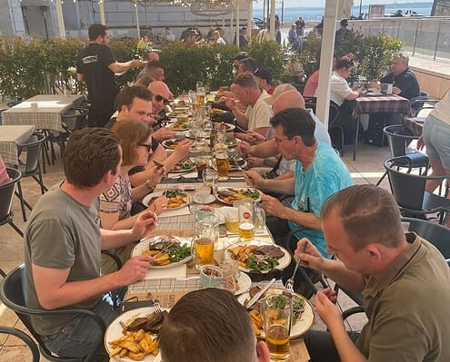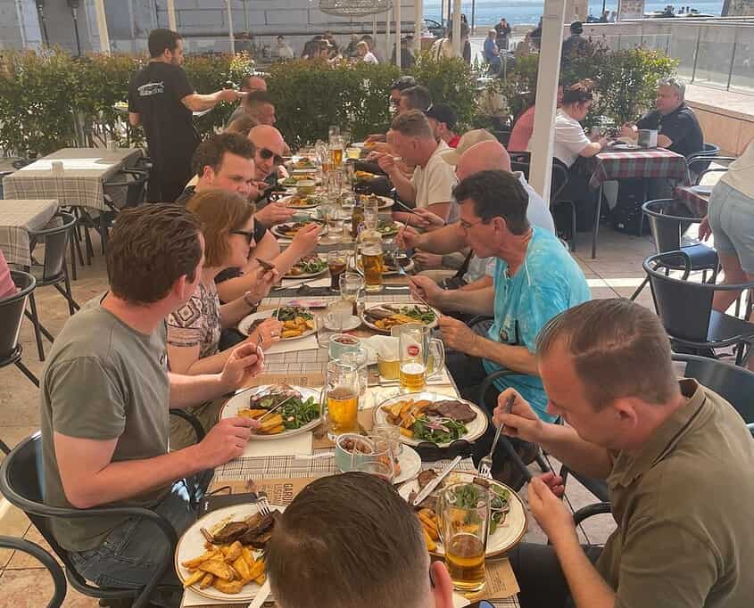 Ook is er genoeg gegeten en gedronken. En eerlijk gezegd, dat heeft ons als team nog dichter bij elkaar gebracht. De gezellige momenten, het lachen en het delen van verhalen hebben deze reis echt speciaal gemaakt.